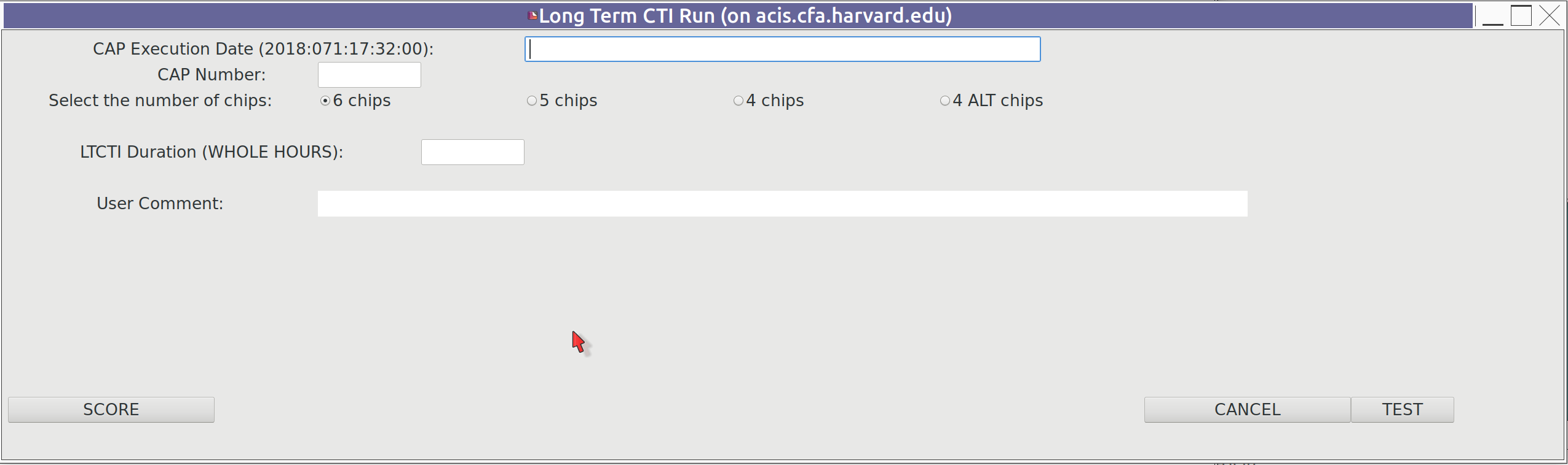 here you have the same set of "SCORE", "CANCEL" and "TEST" buttons as on the LTCTI