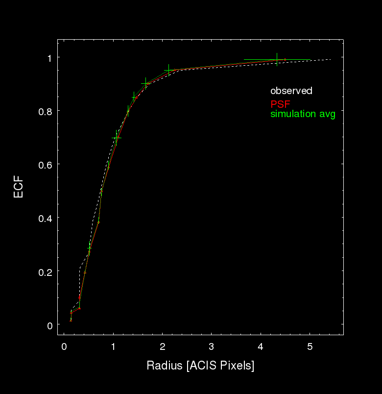 Provides the integrated radial profile (encircled counts fraction) of a 2D image or events file. ECF Profile[Version: full-size] ![]() ECF Profile
