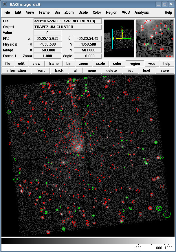 Load the source list from either file (Region → Load Regions... → acisf02254_src.fits OR acisf02254_src.reg). The detections are shown in Figure 2.