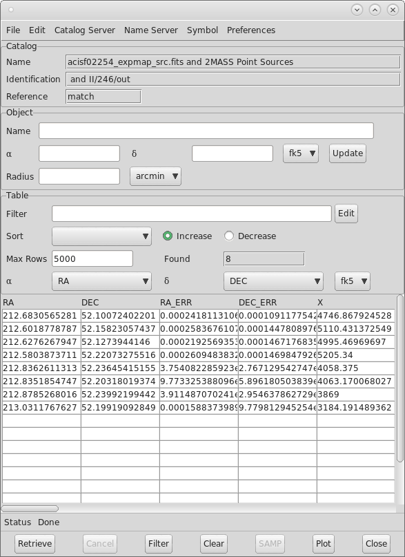 Figure 7: ds9 Catalog Tool