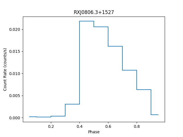 This thread analyzed the variable, periodic source RXJ0806.3+1527. The data products for the observation were barycenter corrected (axbary). Several timing tools were used to create lightcurves (dmextract and glvary) , search for variability (apowerspectrum), and determine the period of the variation (pfold). The period of 321.85 seconds agrees well with what is reported in the literature for this source in this observation. The data products were then phase folded using dmtcalc and a set of Good Time Intervals (GTIs) were created for the brightest part of the variation using dmgti. These GTIs were aligned to ACIS exposure frame time boundaries using the gti_align script. Finally these GTIs were used to filter the event file and specextract was used to extract the spectrum.