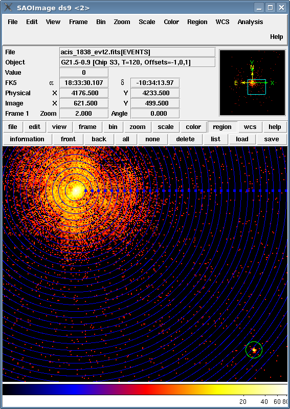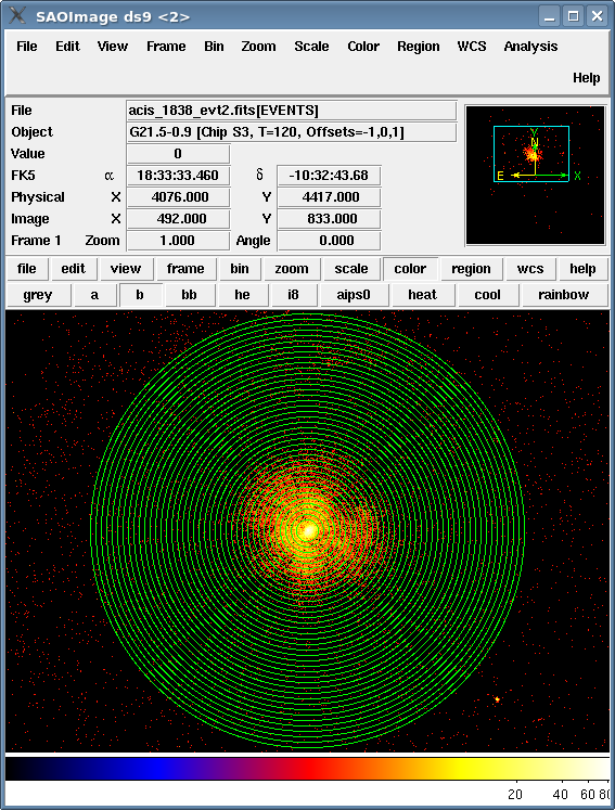 [Print media version: The annuli are displayed in green on the data in ds9.]