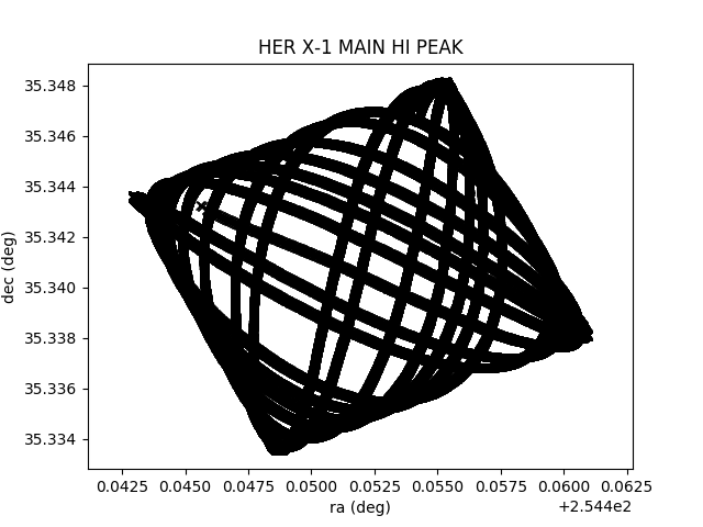 The aspect ratio of the plot is set since at this declination (\(\sim 35^\circ\)) the difference between the two axes is not large.