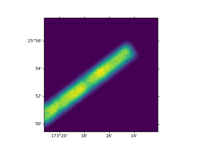 >>> fig = plt.figure() >>> ax = plt.subplot(projection=wcs) >>> plt.imshow(imgvals, origin='lower')
