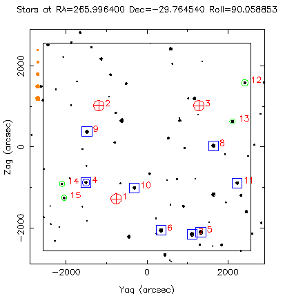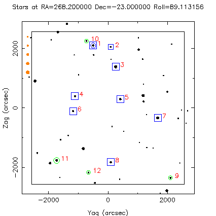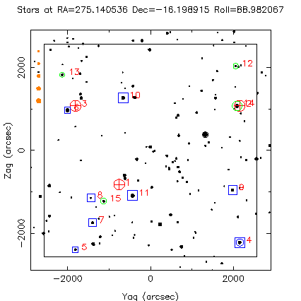 OBSID: 972 M17 ACIS-I SIM Z offset: 0 Grating: NONE RA, Dec, Roll (deg): 275.140536 -16.198915 88.982067 Dither: ON Y_amp= 8.0 Z_amp= 8.0 Y_period=1000.0 Z_period= 707.1 BACKSTOP GUIDE_SUMM OR MANVR DOT MAKE_STARS MP_TARGQUAT at 2002:061:16:58:39.764 (VCDU count = 15851941) Q1,Q2,Q3,Q4: 0.57991314 -0.39391716 -0.54937089 0.45466652 MANVR: Angle= 9.75 deg Duration= 622 sec Slew err= 34.9 arcsec MP_STARCAT at 2002:061:16:58:41.407 (VCDU count = 15851948) ---------------------------------------------------------------------------------------- IDX SLOT ID TYPE SZ MINMAG MAG MAXMAG YANG ZANG DIM RES HALFW NOTES ---------------------------------------------------------------------------------------- [ 1] 0 2 FID 8x8 5.797 7.000 8.000 -758 -836 1 1 25 [ 2] 1 4 FID 8x8 5.797 7.000 8.000 2155 1070 1 1 25 [ 3] 2 5 FID 8x8 5.797 7.000 8.000 -1812 1068 1 1 25 [ 4] 3 821171832 BOT 6x6 5.797 8.581 9.391 2156 -2222 20 1 120 [ 5] 4 821186096 ACQ 6x6 5.797 9.345 10.125 -1814 -2393 9 1 65 [ 6] 5 821181816 ACQ 6x6 5.797 7.941 8.844 -2003 973 10 1 70 [ 7] 6 821183768 ACQ 6x6 5.797 9.169 10.016 -1400 -1743 15 1 95 [ 8] 7 821185112 ACQ 6x6 5.797 10.109 10.906 -1438 -1145 15 1 95 [ 9] 0 821171288 ACQ 6x6 5.797 8.862 9.797 1982 -954 17 1 105 [10] 1 821178592 ACQ 6x6 5.797 7.945 8.797 -660 1272 20 1 120 [11] 2 821180448 ACQ 6x6 5.797 7.477 8.266 -433 -1089 20 1 120 [12] 4 821174968 GUI 6x6 5.797 9.618 10.453 2056 2037 1 1 25 [13] 5 821183816 GUI 6x6 5.797 9.603 10.797 -2129 1830 1 1 25 [14] 6 821179256 GUI 6x6 5.797 7.523 8.359 2090 1076 1 1 25 [15] 7 821179456 GUI 6x6 5.797 9.186 10.078 -1129 -1221 1 1 25