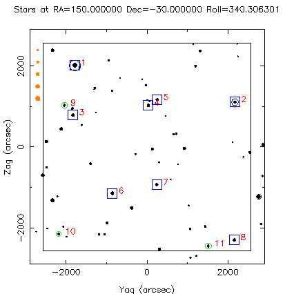 OBSID: 61280 RA, Dec, Roll (deg): 150.000000 -30.000000 340.990073 BACKSTOP GUIDE_SUMM OR MANVR DOT MAKE_STARS MP_TARGQUAT at 2002:060:07:31:36.304 (VCDU count = 15381996) Q1,Q2,Q3,Q4: -0.28785109 -0.08800358 0.93126547 0.20528456 MANVR: Angle= 109.26 deg Duration= 2117 sec Slew err= 84.6 arcsec MP_STARCAT at 2002:060:07:31:37.947 (VCDU count = 15382002) ---------------------------------------------------------------------------------------- IDX SLOT ID TYPE SZ MINMAG MAG MAXMAG YANG ZANG DIM RES HALFW NOTES ---------------------------------------------------------------------------------------- [ 1] 0 867180904 BOT 6x6 5.797 6.957 7.734 -1758 2040 20 1 120 [ 2] 1 867185904 ACQ 6x6 5.797 8.619 9.641 264 1165 15 1 95 [ 3] 2 939668584 ACQ 6x6 5.797 8.238 9.031 -869 -1133 20 1 120 [ 4] 3 939667832 ACQ 6x6 5.797 8.600 9.391 232 -932 20 1 120 [ 5] 4 867184424 ACQ 6x6 5.797 7.944 8.734 -1820 812 20 1 120 [ 6] 5 868887568 ACQ 6x6 5.797 8.876 9.656 2185 1085 20 1 120 [ 7] 6 939666960 ACQ 6x6 5.797 9.085 9.875 132 -52 20 1 120 [ 8] 7 867183000 ACQ 6x6 5.797 9.276 10.062 1220 1988 20 1 120 [ 9] 1 867180440 GUI 6x6 5.797 9.141 9.938 1343 2361 1 1 25 [10] 2 939670616 GUI 6x6 5.797 9.444 10.234 -2206 -2124 1 1 25 [11] 3 939671384 GUI 6x6 5.797 9.235 10.031 -1009 -1866 1 1 25 [12] 4 939663504 GUI 6x6 5.797 8.510 9.297 2131 -2324 1 1 25 >> WARNING: Quadrant Boundary. [ 7]