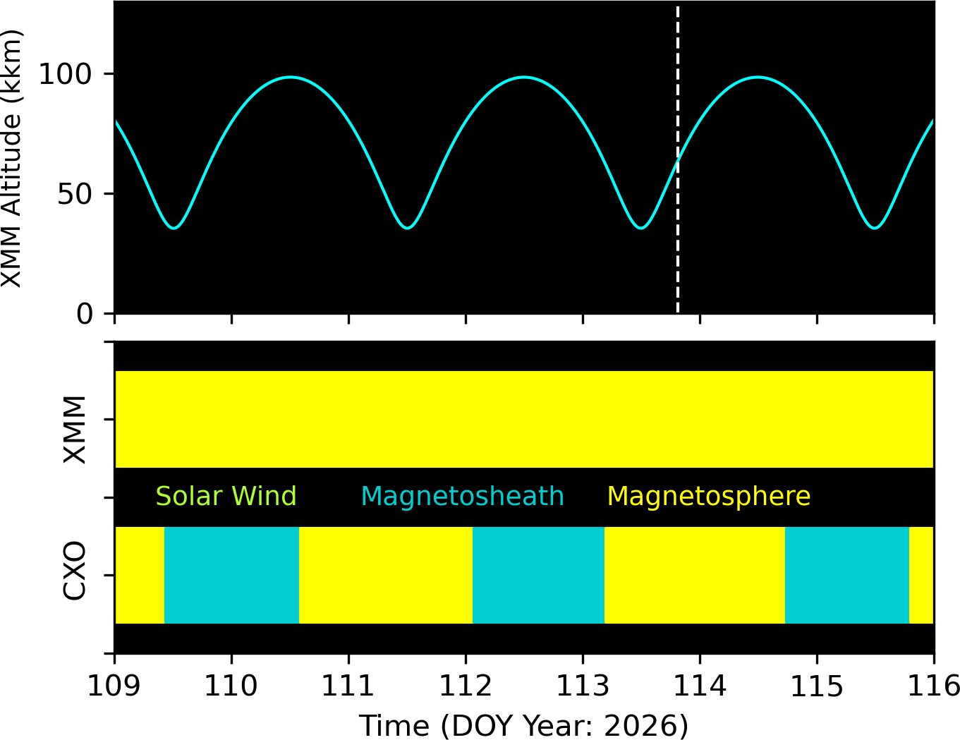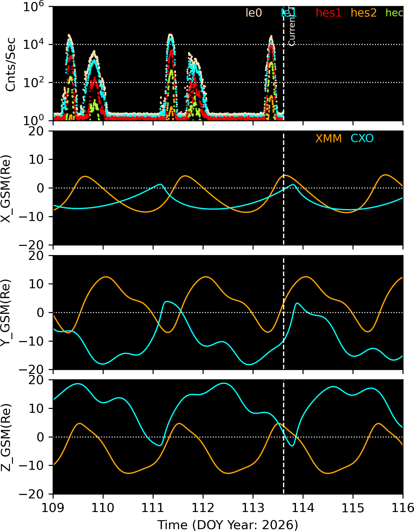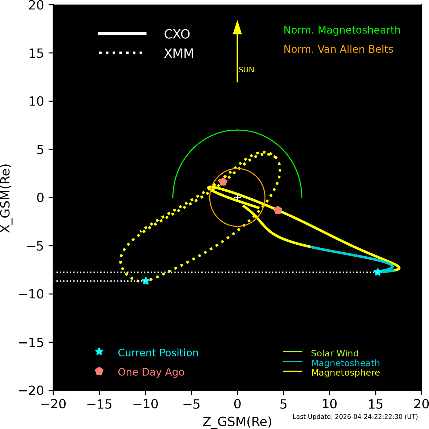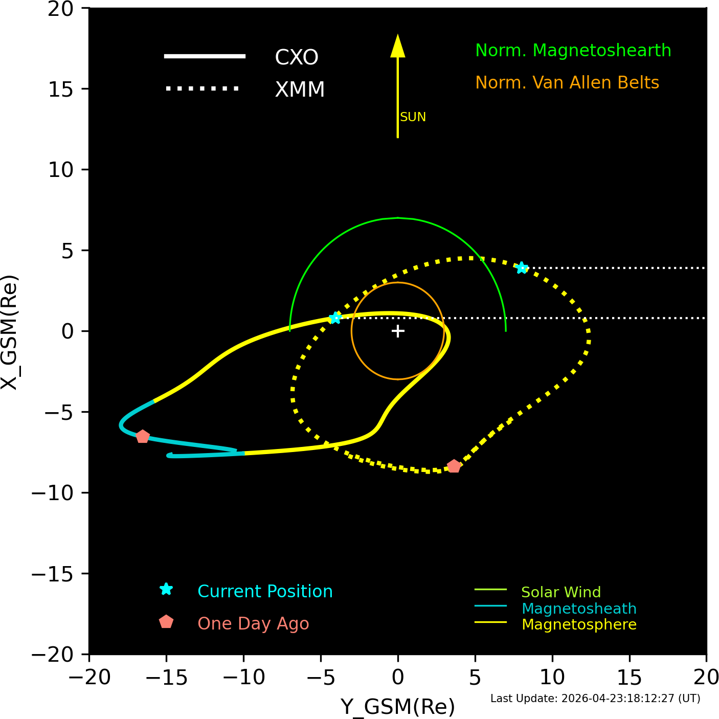 XMM and CXO orbits in GSM coordinates.