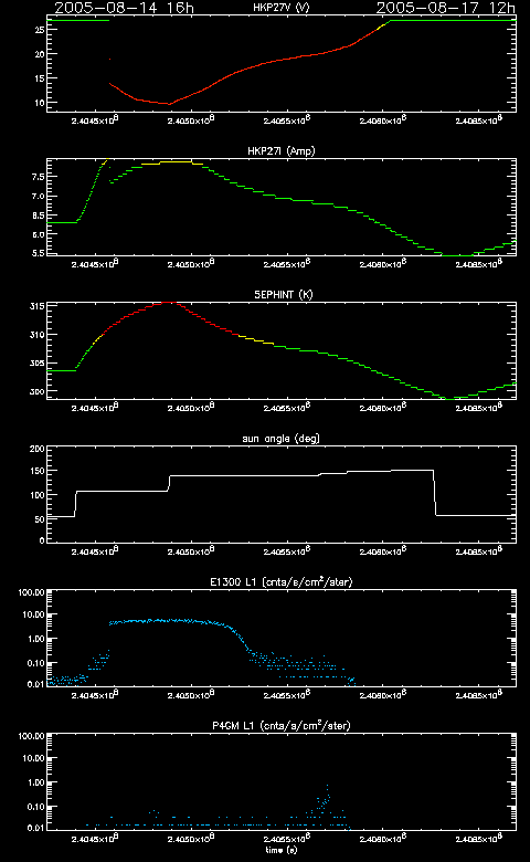 | MSID | 08/12/05 | 08/13/05 | 08/14/05 | 08/15/05 | 08/16/05 | 08/17/05 | 08/18/05 | yellow limits (lower) upper | red limits (lower) upper | Units | Description |