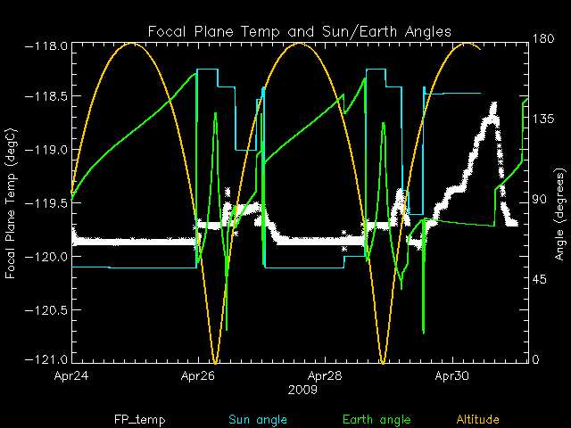 The following table shows the maximum temperature (in K) appeared during the observations. All data are taken between Apr 20 and Apr 27, 2009- DOY 110-117.