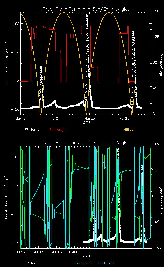 The following table shows the maximum temperature (in K) appeared during the observations. All data are taken between Mar 15 and Mar 21, 2010- DOY 074-080.
