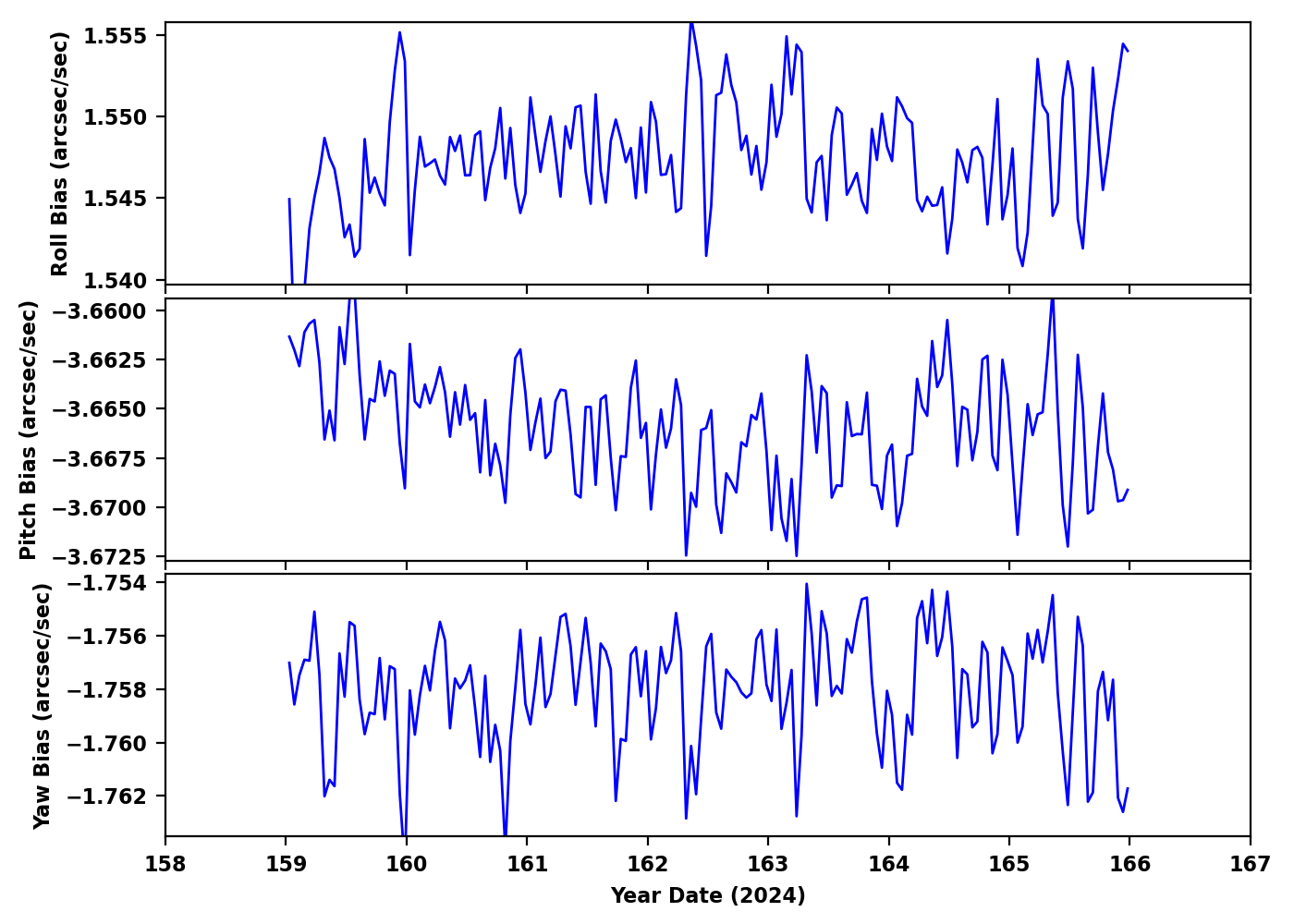 | MSID | 06/07/24 | 06/08/24 | 06/09/24 | 06/10/24 | 06/11/24 | 06/12/24 | 06/13/24 | yellow limits (lower) upper | red limits (lower) upper | Units | Description |