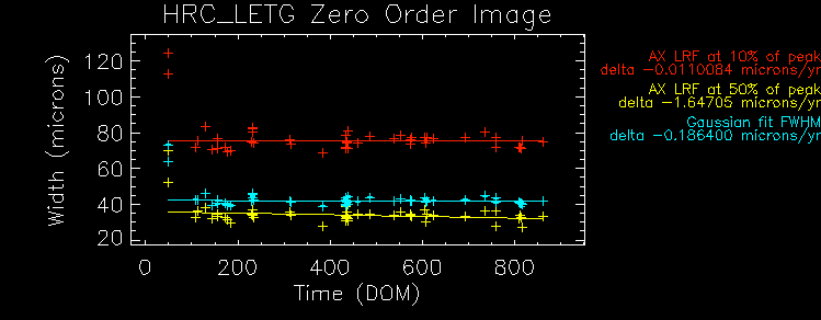 We plot the width of the zero order streak of ACIS/HETG observations and