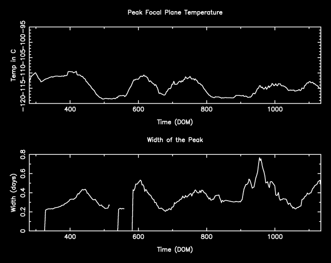 Observations with cold radiator temperature deviation larger than 0.5 C from the nominal value of -127.92905 C are dropped (after DOM 200).