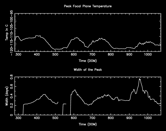 Observations with cold radiator temperature deviation larger than 0.5 C from the nominal value of -127.92905 C are dropped (after DOM 200).