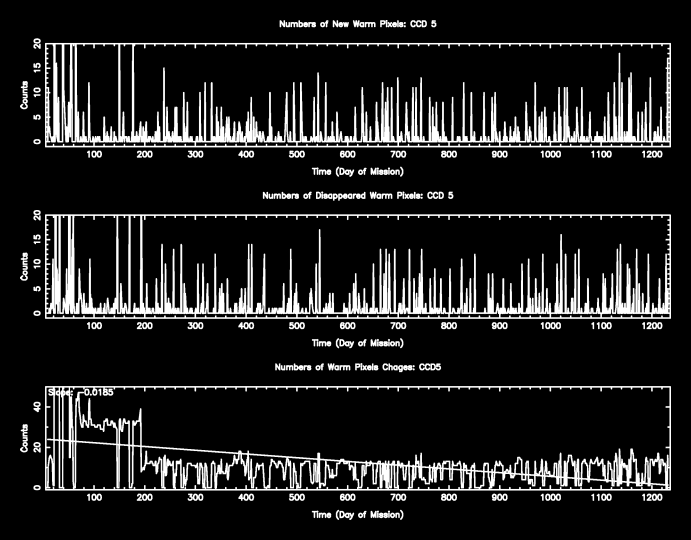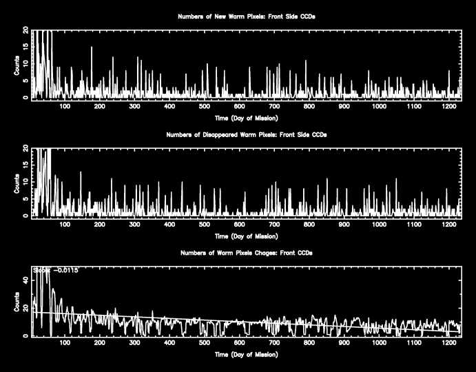 The plots below were generated with a new warm pixel finding script. Please see Acis Bad Pixel Page for details.