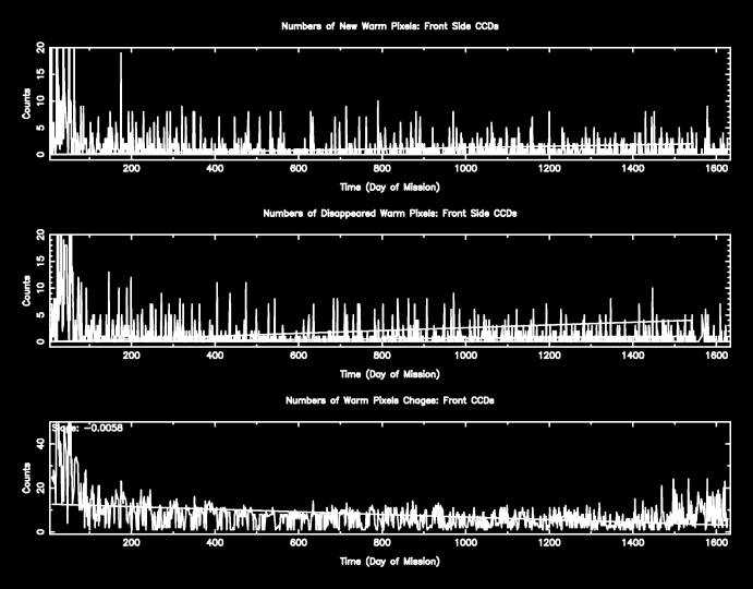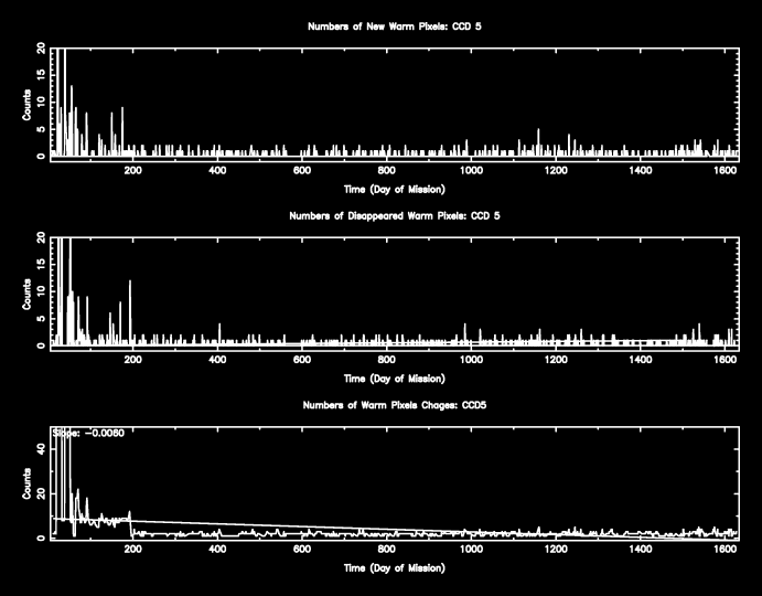 The plots below were generated with a new warm pixel finding script. Please see Acis Bad Pixel Page for details.