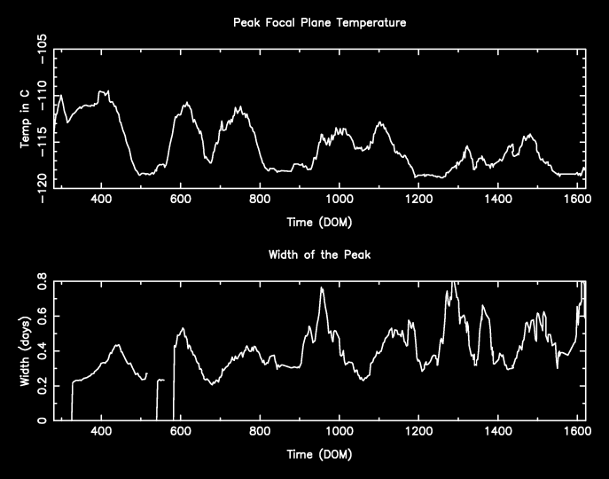 Observations with cold radiator temperature deviation larger than 0.5 C from the nominal value of -127.92905 C are dropped (after DOM 200).
