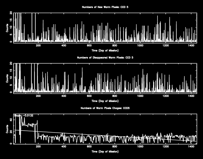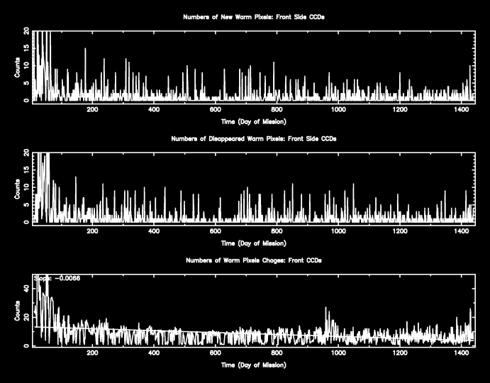 The plots below were generated with a new warm pixel finding script. Please see Acis Bad Pixel Page for details.