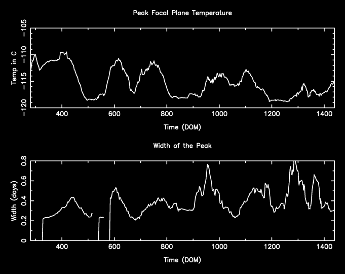 Observations with cold radiator temperature deviation larger than 0.5 C from the nominal value of -127.92905 C are dropped (after DOM 200).