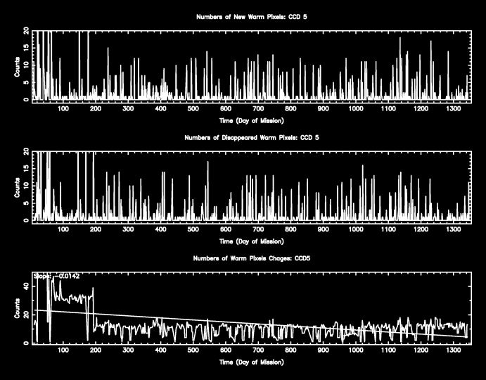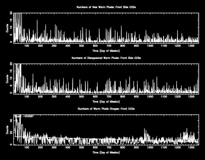 The plots below were generated with a new warm pixel finding script. Please see Acis Bad Pixel Page for details.