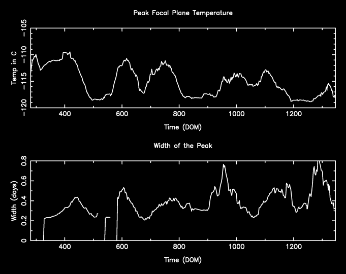 Observations with cold radiator temperature deviation larger than 0.5 C from the nominal value of -127.92905 C are dropped (after DOM 200).