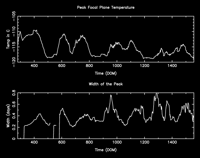 Observations with cold radiator temperature deviation larger than 0.5 C from the nominal value of -127.92905 C are dropped (after DOM 200).