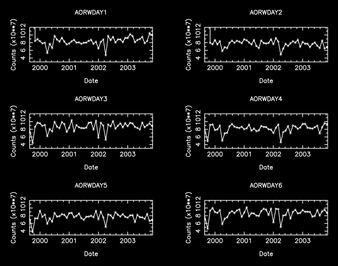 Statistics: # IMAGE NPIX MEAN RMS MIN MAX ACIS_oct03 6004901 5.0230 9.3319 0.0 6547.0 I2 node 0 262654 3.060178 3.491475 0.0 115.0 I2 node 1 262654 4.038747 5.897357 0.0 200.0 I2 node 2 262654 4.662872 8.592001 0.0 260.0 I2 node 3 262654 5.152273 10.703278 0.0 328.0 I3 node 0 262654 5.863520 11.700904 0.0 340.0 I3 node 1 262654 5.641711 9.211031 0.0 283.0 I3 node 2 262654 4.656312 6.103259 0.0 208.0 I3 node 3 262654 3.123341 2.980502 0.0 114.0 S2 node 0 262397 6.523687 3.247555 0.0 134.0 S2 node 1 262397 8.618193 22.969935 0.0 463.0 S2 node 2 262397 7.537731 4.803941 0.0 118.0 S2 node 3 262397 7.047790 4.118792 0.0 52.0 S3 node 0 262397 9.114811 11.884218 0.0 478.0 S3 node 1 262397 11.913536 9.566002 0.0 108.0 S3 node 2 262397 9.891958 5.147694 0.0 91.0 S3 node 3 262397 8.431926 5.125502 0.0 61.0