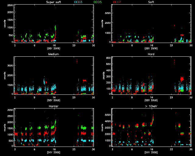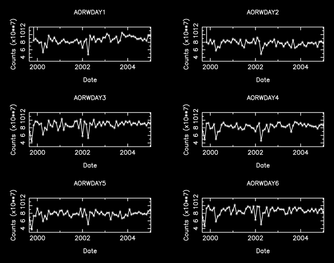 Statistics: # IMAGE NPIX MEAN RMS MIN MAX ACIS_jan04 6004901 7.289 16.16 0.0 18069.0 I2 node 0 262654 5.720008 4.142743 0.0 136.0 I2 node 1 262654 6.734103 7.326397 0.0 237.0 I2 node 2 262654 7.910548 13.865610 0.0 4368.0 I2 node 3 262654 9.421806 14.544204 0.0 460.0 I3 node 0 262654 10.404586 16.039350 0.0 458.0 I3 node 1 262654 8.591451 11.787176 0.0 368.0 I3 node 2 262654 7.301332 7.860536 0.0 235.0 I3 node 3 262654 5.961287 4.163508 0.0 139.0 S2 node 0 262397 8.931687 3.399037 0.0 173.0 S2 node 1 262397 10.702512 22.507554 0.0 482.0 S2 node 2 262397 9.332027 3.556288 0.0 68.0 S2 node 3 262397 8.944797 3.390397 0.0 242.0 S3 node 0 262397 13.337245 16.117694 0.0 276.0 S3 node 1 262397 22.217586 54.276952 0.0 18069.0 S3 node 2 262397 11.745965 3.786975 0.0 41.0 S3 node 3 262397 10.746823 3.750907 0.0 54.0