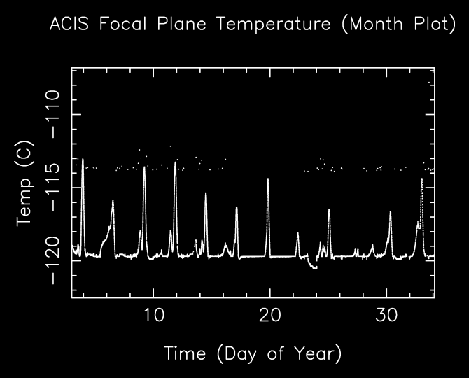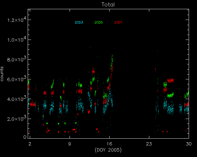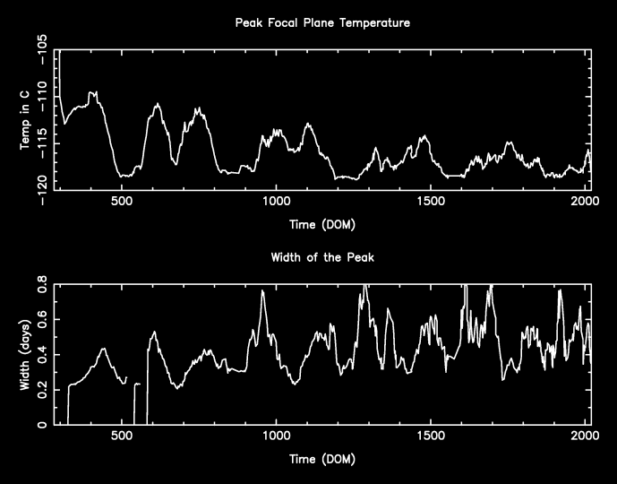 We report CTIs with a refined data definition. CTIs were computed for the temperature dependency corrected data. Please see new CTI page for detailed explanation. CTI's are computed for Mn K alpha, and defined as slope/intercept x10^4 of row # vs ADU. Data file here