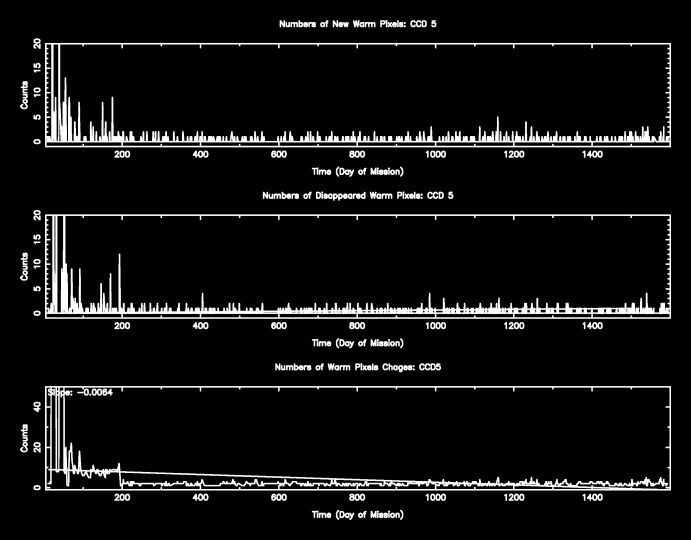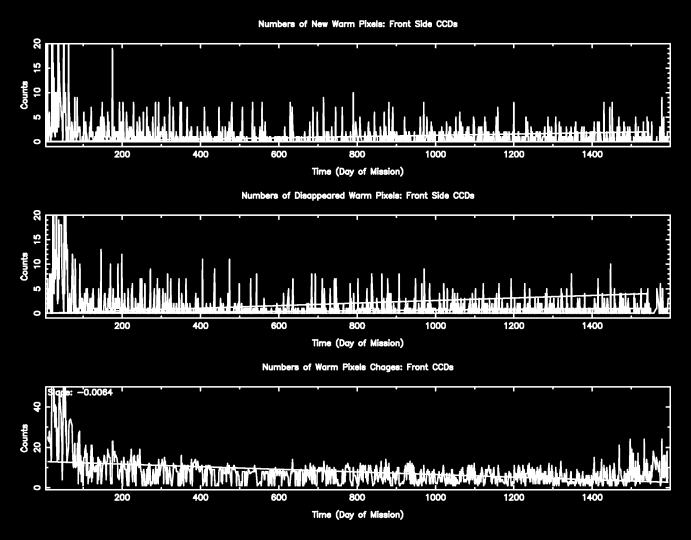 The plots below were generated with a new warm pixel finding script. Please see Acis Bad Pixel Page for details.