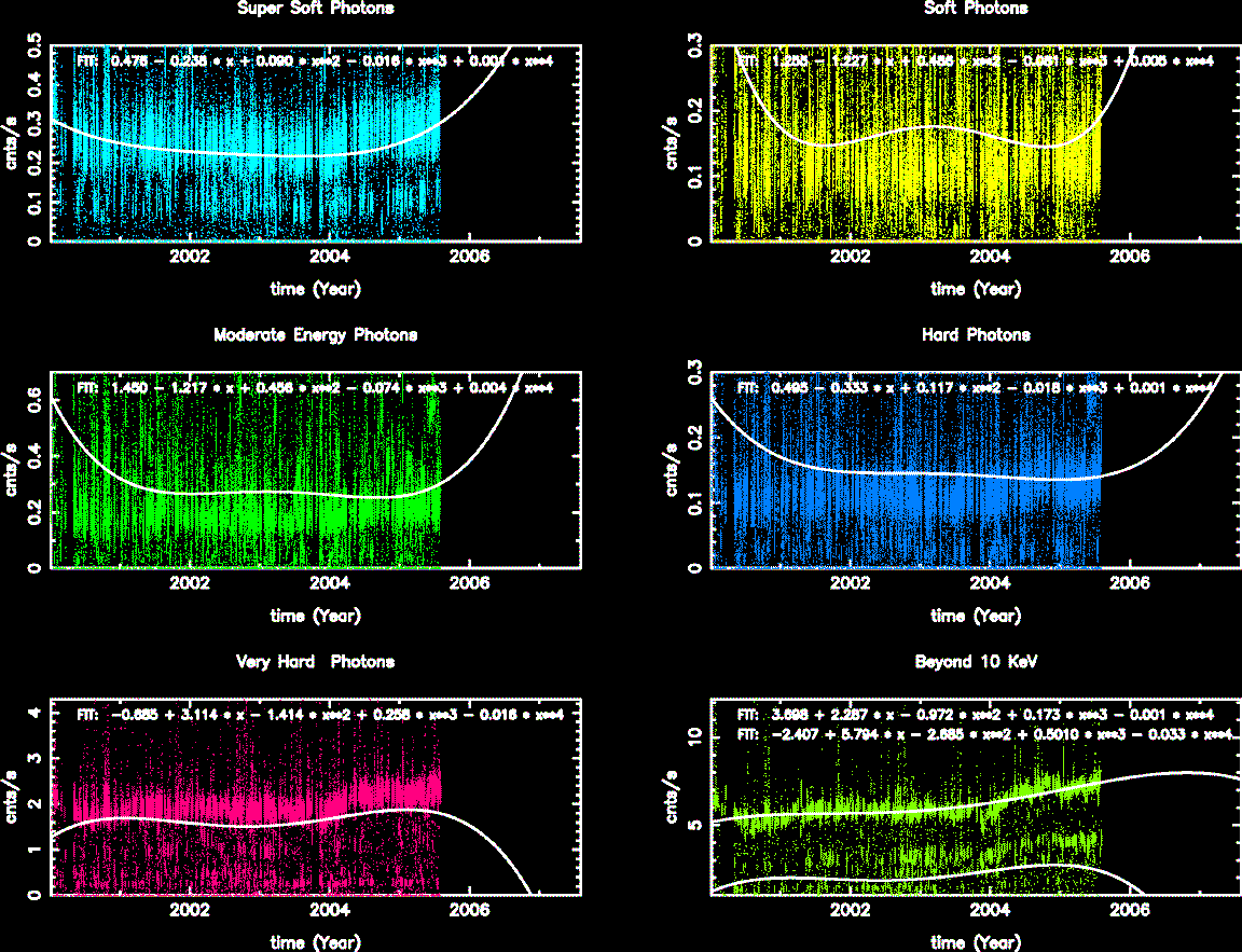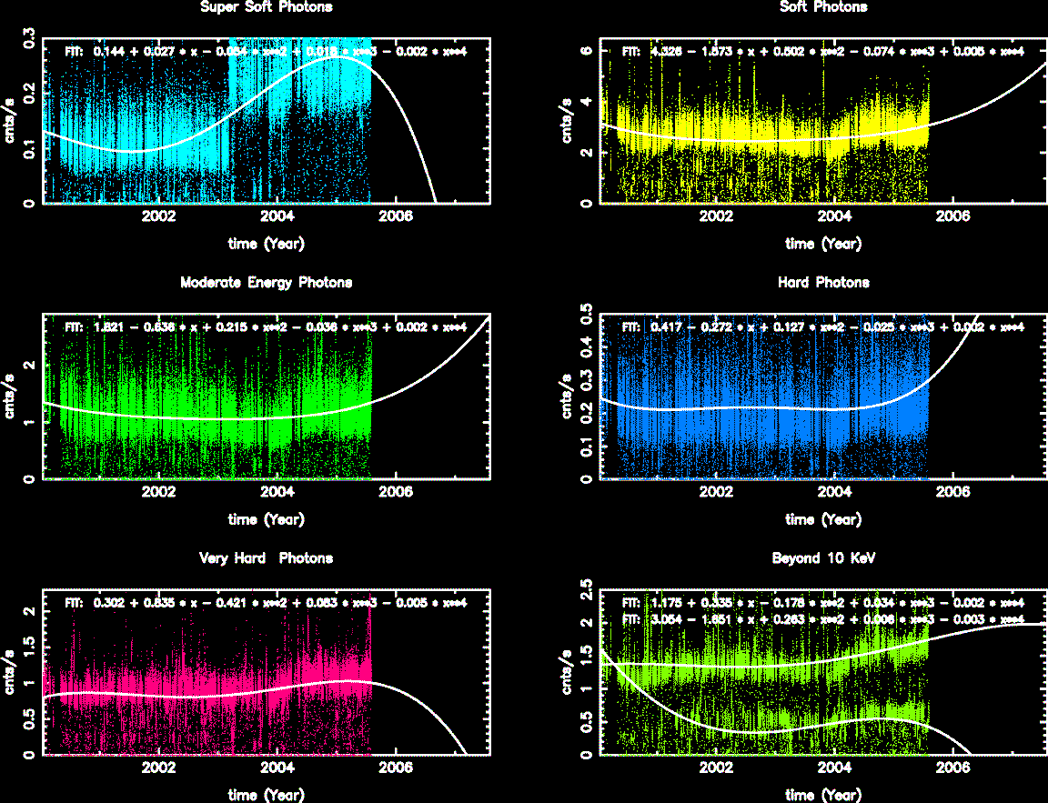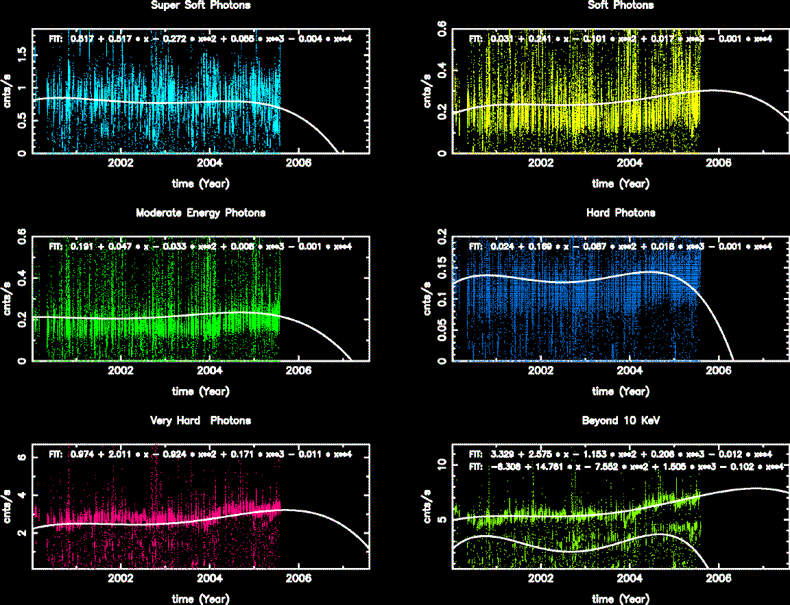 Statistics: # IMAGE NPIX MEAN RMS MIN MAX ACIS_jul05 6004901 10.2465 15.1564 0.0 807.0 I2 node 0 262654 11.130140 4.046822 1.0 62.0 I2 node 1 262654 11.846646 4.982092 1.0 464.0 I2 node 2 262654 11.725864 4.162978 1.0 221.0 I2 node 3 262654 11.808007 4.612586 1.0 67.0 I3 node 0 262654 12.364152 9.759841 0.0 447.0 I3 node 1 262654 11.946967 9.512692 0.0 349.0 I3 node 2 262654 11.140183 3.864954 0.0 49.0 I3 node 3 262654 12.045464 6.463788 0.0 183.0 S2 node 0 262654 14.904048 4.787066 1.0 161.0 S2 node 1 262654 14.905832 5.451696 1.0 101.0 S2 node 2 262654 15.703802 5.461826 1.0 167.0 S2 node 3 262654 15.271886 4.769790 1.0 563.0 S3 node 0 262654 14.193738 5.402562 1.0 153.0 S3 node 1 262654 15.200353 4.512498 1.0 82.0 S3 node 2 262654 14.816751 4.024710 1.0 65.0 S3 node 3 262654 14.002657 3.906679 1.0 41.0