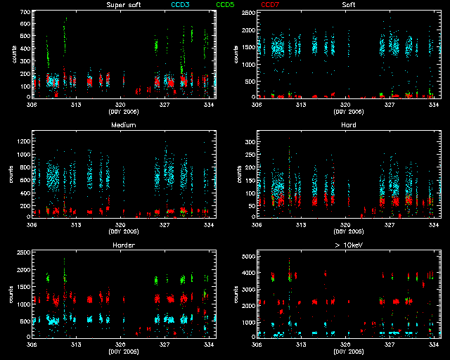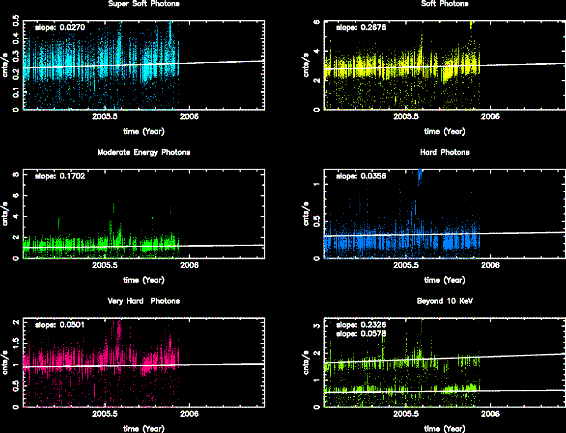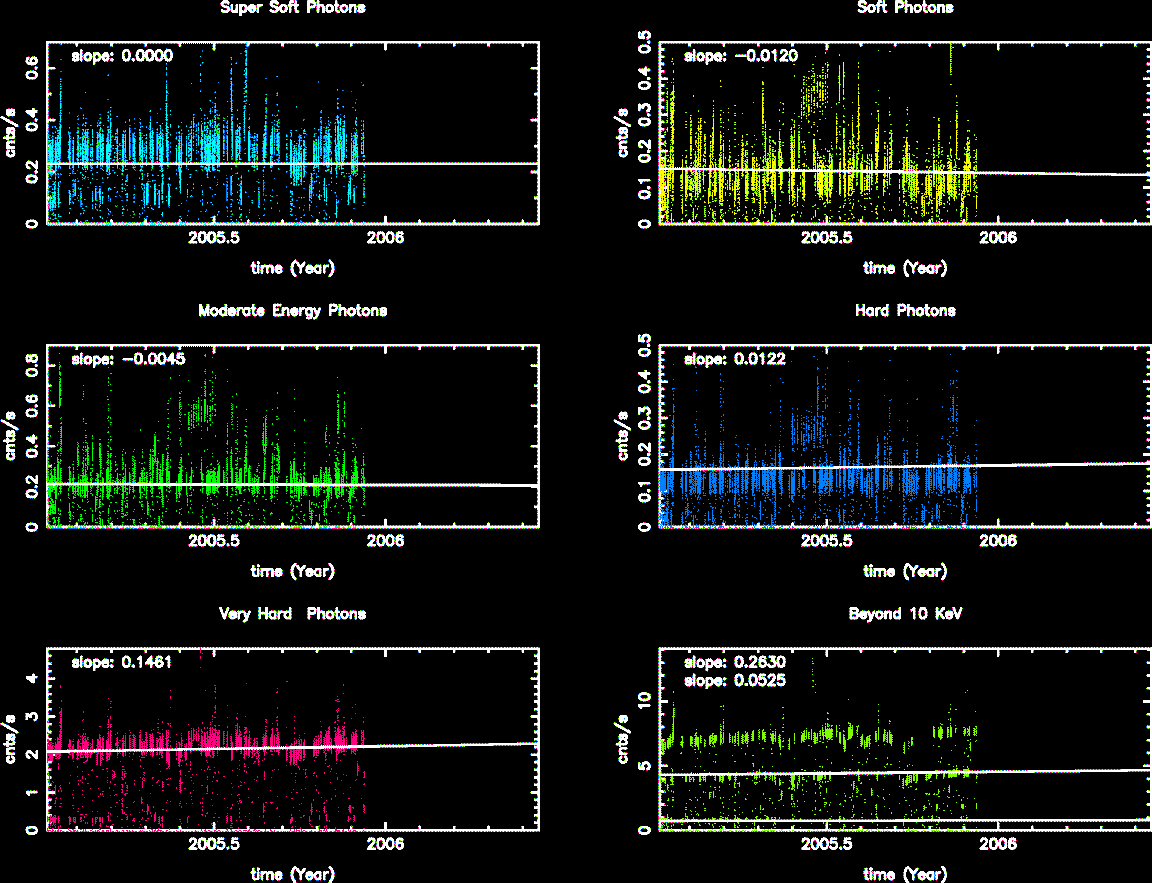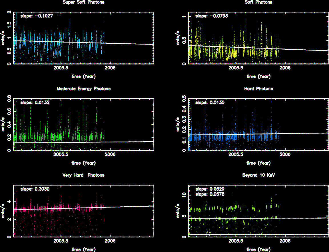 Statistics: # IMAGE NPIX MEAN RMS MIN MAX ACIS_nov05 6004901 10.650 24.347 0.0 715.0 I2 node 0 262654 10.255917 3.772056 0.0 39.0 I2 node 1 262654 11.014191 4.222378 0.0 358.0 I2 node 2 262654 11.306995 4.205951 0.0 71.0 I2 node 3 262654 11.557454 4.671248 0.0 60.0 I3 node 0 262654 15.506658 11.074338 0.0 257.0 I3 node 1 262654 12.803806 9.344965 0.0 215.0 I3 node 2 262654 10.559462 3.853488 0.0 48.0 I3 node 3 262654 10.171162 3.779851 0.0 168.0 I2 node 0 262654 12.726329 4.096924 0.0 102.0 I2 node 1 262654 13.013247 4.753586 0.0 80.0 I2 node 2 262654 13.402715 4.356347 0.0 90.0 I2 node 3 262654 12.861956 4.045931 0.0 354.0 I3 node 0 262654 21.710340 54.690563 0.0 658.0 I3 node 1 262654 31.594993 77.462619 0.0 662.0 I3 node 2 262654 14.261497 3.970942 0.0 41.0 I3 node 3 262654 13.360524 3.823633 0.0 33.0