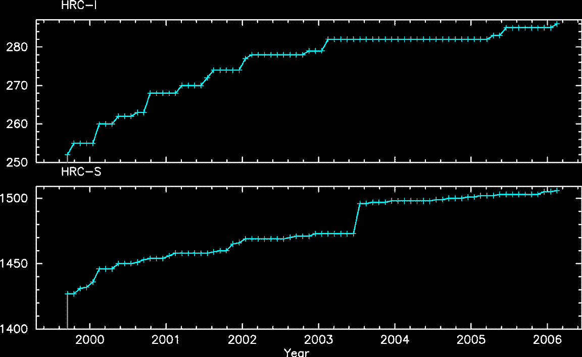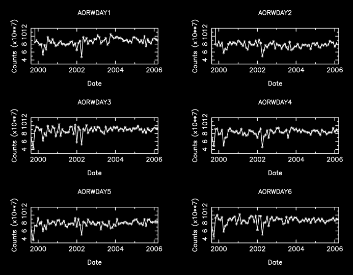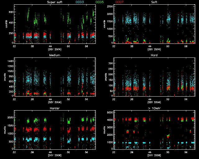 Statistics: # IMAGE NPIX MEAN RMS MIN MAX ACIS_feb06 6004901 11.240 15.030 0.0 595.0 I2 node 0 262654 8.229694 3.309120 0.0 35.0 I2 node 1 262654 8.663931 3.572414 0.0 248.0 I2 node 2 262654 9.004864 3.636081 0.0 51.0 I2 node 3 262654 9.476923 3.997664 0.0 51.0 I3 node 0 262654 9.786234 3.821574 0.0 44.0 I3 node 1 262654 10.085526 7.469850 0.0 183.0 I3 node 2 262654 8.396186 3.289531 0.0 47.0 I3 node 3 262654 8.073692 3.277488 0.0 126.0 S2 node 0 262654 19.287385 8.257067 1.0 65.0 S2 node 1 262654 26.331657 15.835379 1.0 131.0 S2 node 2 262654 28.870113 18.795794 0.0 130.0 S2 node 3 262654 17.984767 7.321862 1.0 261.0 S3 node 0 262654 15.661945 17.419651 0.0 503.0 S3 node 1 262654 15.051229 4.998700 0.0 73.0 S3 node 2 262654 14.678048 4.285088 0.0 52.0 S3 node 3 262654 13.704536 4.116114 1.0 337.0