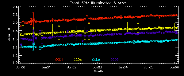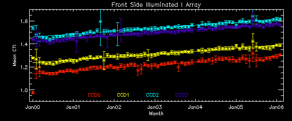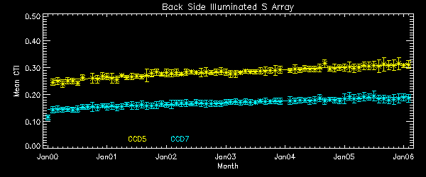 CTI's are computed for Mn K alpha, and defined as slope/intercept x10^4 of row # vs ADU.