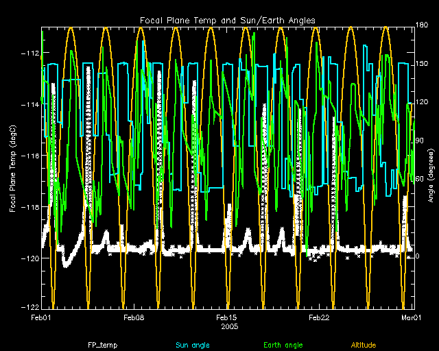 The following is a plot of focal plane temperature and sun angle, earth angle, and altitude.