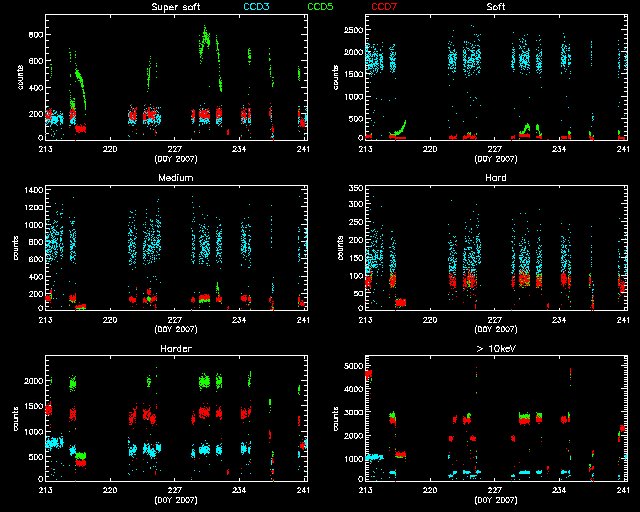 Statistics: # IMAGE NPIX MEAN RMS MIN MAX ACIS_aug07 6004901 12.318 17.895 0.0 604.0 I2 node 0 262654 7.409714 3.080422 0.0 36.0 I2 node 1 262654 7.914388 3.378725 0.0 232.0 I2 node 2 262654 7.773907 3.160460 0.0 135.0 I2 node 3 262654 7.726438 3.297689 0.0 43.0 I3 node 0 262654 8.793829 3.485135 0.0 44.0 I3 node 1 262654 9.292873 8.630314 0.0 204.0 I3 node 2 262654 8.548894 3.332161 0.0 89.0 I3 node 3 262654 8.558395 3.383854 0.0 143.0 S2 node 0 262654 17.018769 6.962760 1.0 183.0 S2 node 1 262654 23.171608 12.942851 0.0 112.0 S2 node 2 262654 23.075348 15.379375 0.0 171.0 S2 node 3 262654 20.892008 20.709510 0.0 378.0 S3 node 0 262654 20.597373 19.498245 0.0 295.0 S3 node 1 262654 26.381100 18.264905 0.0 295.0 S3 node 2 262654 33.302194 26.023698 1.0 276.0 S3 node 3 262654 27.212356 18.045149 0.0 175.0