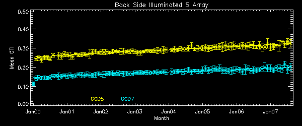 CTI's are computed for Mn K alpha, and defined as slope/intercept x10^4 of row # vs ADU.