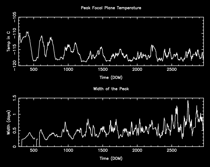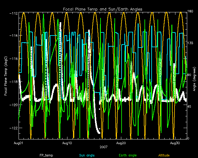 The following is a plot of focal plane temperature and sun angle, earth angle, and altitude.