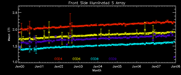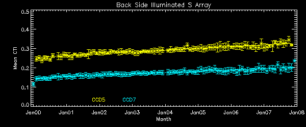 CTI's are computed for Mn K alpha, and defined as slope/intercept x10^4 of row # vs ADU.
