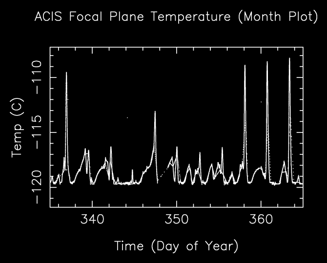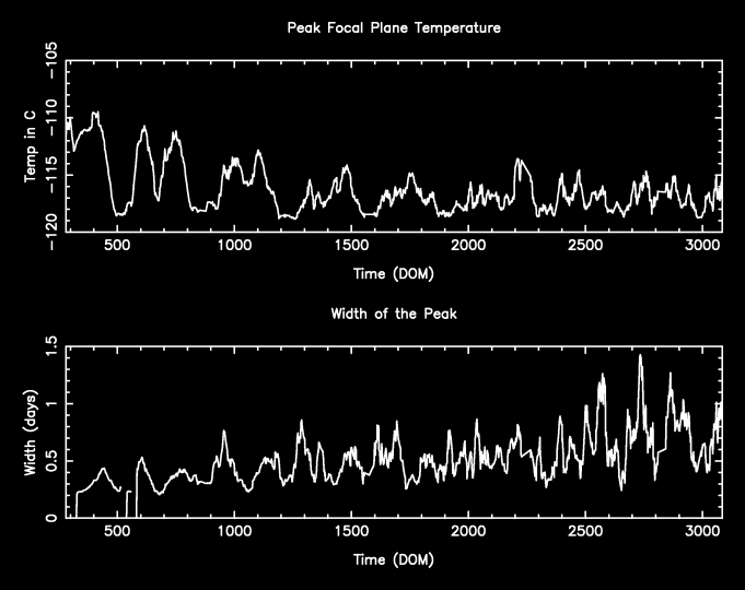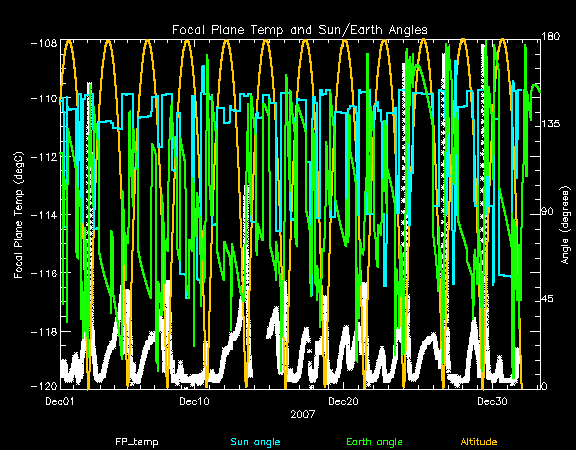 The following is a plot of focal plane temperature and sun angle, earth angle, and altitude.