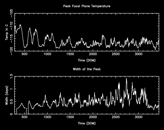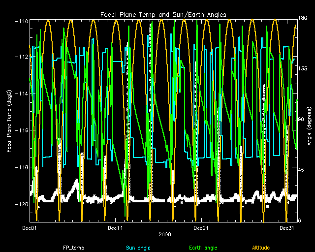 The following is a plot of focal plane temperature and sun angle, earth angle, and altitude.