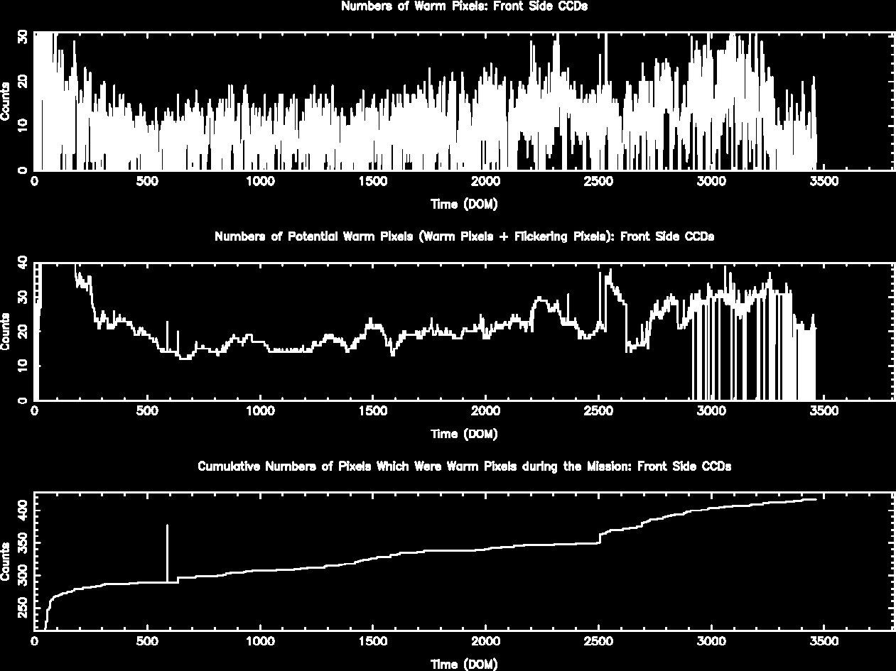 The plots below were generated with a new warm pixel finding script. Please see Acis Bad Pixel Page for details.