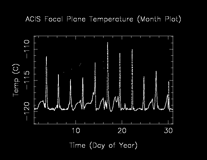The following is a plot of focal plane temperature and sun angle, earth angle, and altitude.