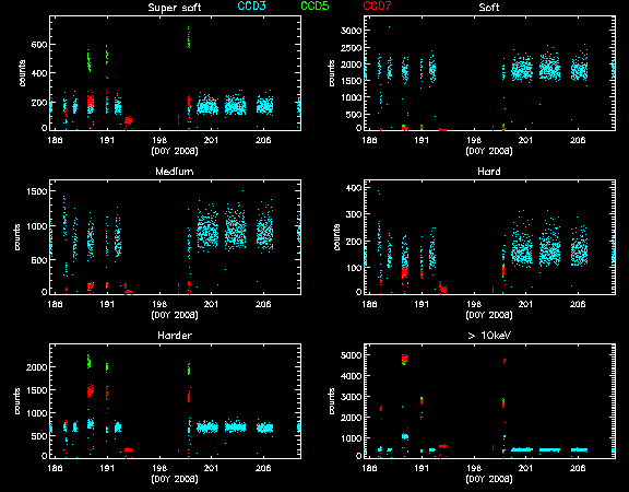 Statistics: # IMAGE NPIX MEAN RMS MIN MAX ACIS_jul08 6004901 10.71 20.84 0.0 26121.0 I2 node 0 262654 12.333550 4.928884 0.0 77.0 I2 node 1 262654 13.094889 5.128260 0.0 339.0 I2 node 2 262654 12.747208 4.423503 0.0 91.0 I2 node 3 262654 12.772314 51.617686 0.0 26121.0 I3 node 0 262654 12.350268 4.507912 0.0 62.0 I3 node 1 262654 12.984821 12.012177 0.0 306.0 I3 node 2 262654 11.923514 4.183553 0.0 106.0 I3 node 3 262654 11.896450 4.328989 0.0 235.0 I2 node 0 262654 15.678064 15.805902 0.0 5221.0 I2 node 1 262654 16.371160 6.511526 1.0 104.0 I2 node 2 262654 17.529404 7.998889 1.0 121.0 I2 node 3 262654 16.362616 6.097565 1.0 522.0 I3 node 0 262654 14.221592 8.701747 0.0 188.0 I3 node 1 262654 14.178521 5.095204 0.0 164.0 I3 node 2 262654 14.718761 6.279708 1.0 92.0 I3 node 3 262654 14.479599 8.489646 1.0 108.0