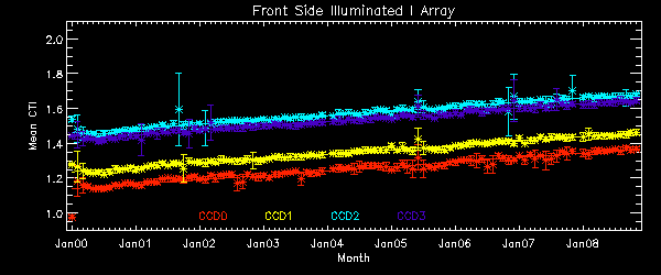 CTI's are computed for Mn K alpha, and defined as slope/intercept x10^4 of row # vs ADU.