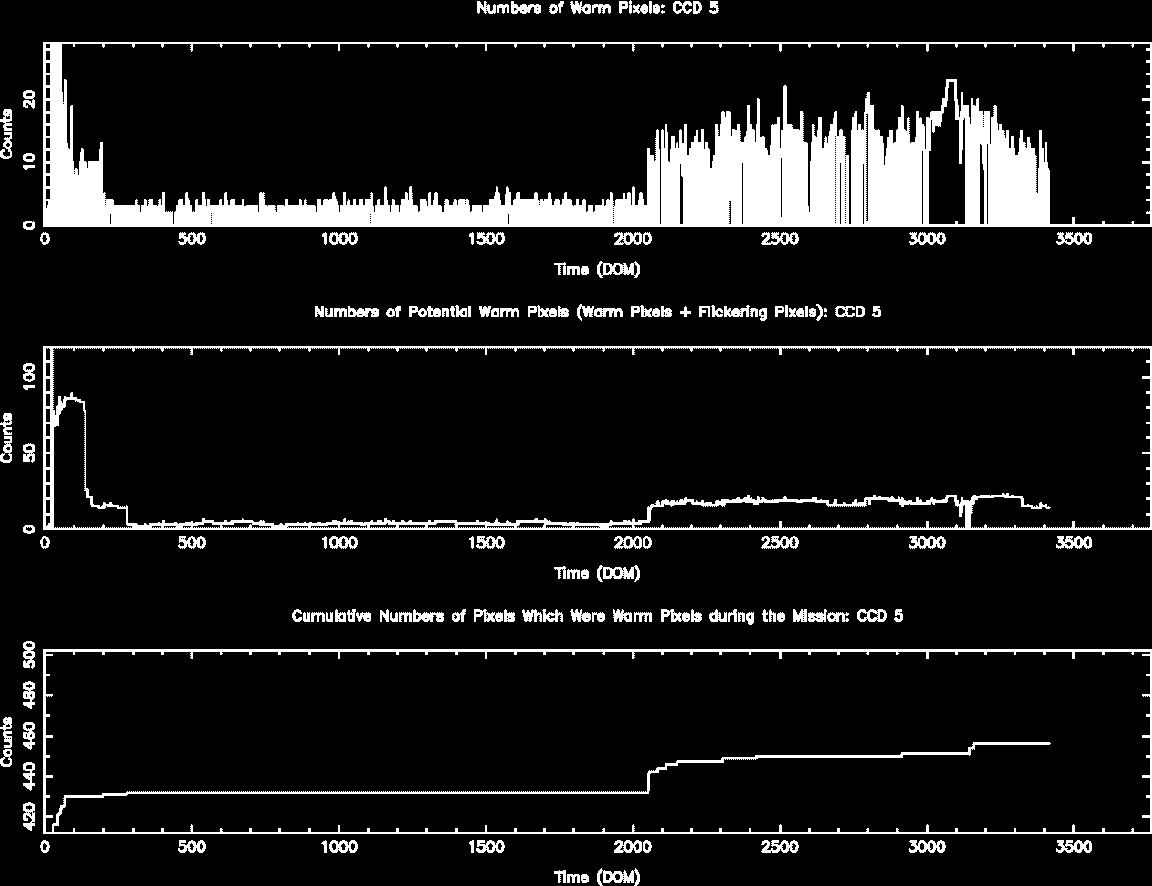 The plots below were generated with a new warm pixel finding script. Please see Acis Bad Pixel Page for details.