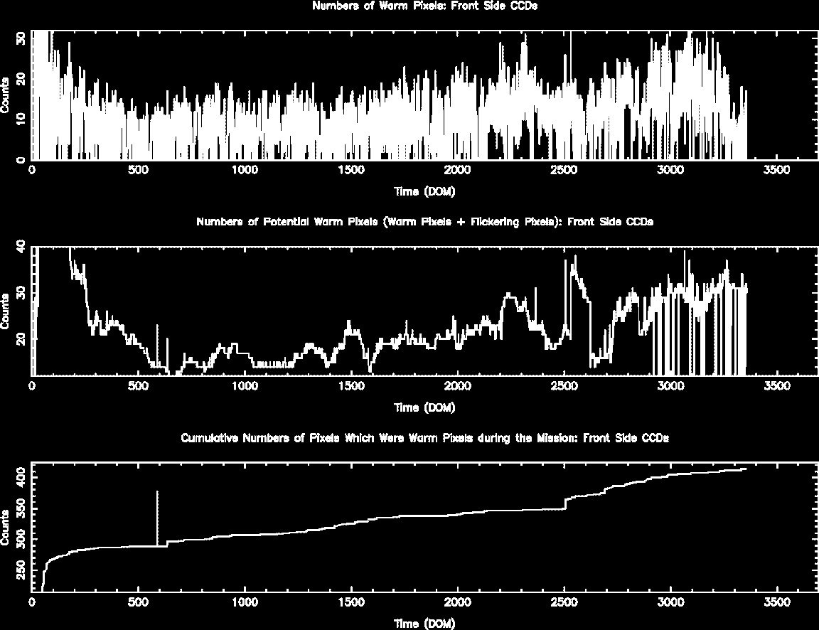 The plots below were generated with a new warm pixel finding script. Please see Acis Bad Pixel Page for details.