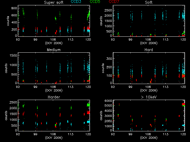 Statistics: # IMAGE NPIX MEAN RMS MIN MAX ACIS_apr09 6004901 14.83 26.32 0.0 899.0 I2 node 0 262654 11.204105 4.228541 0.0 64.0 I2 node 1 262654 13.668414 9.743421 0.0 289.0 I2 node 2 262654 36.872551 41.406925 0.0 203.0 I2 node 3 262654 35.086011 31.313301 0.0 166.0 I3 node 0 262654 42.308109 33.567796 0.0 186.0 I3 node 1 262654 54.205963 57.932804 0.0 341.0 I3 node 2 262654 14.020256 9.040811 0.0 140.0 I3 node 3 262654 12.180908 4.423860 0.0 227.0 S2 node 0 262654 9.199904 4.039866 0.0 862.0 S2 node 1 262654 9.422471 4.066641 0.0 83.0 S2 node 2 262654 9.774494 3.886934 0.0 188.0 S2 node 3 262654 9.529052 3.740101 0.0 551.0 S3 node 0 262654 14.045749 5.826476 0.0 152.0 S3 node 1 262654 14.806104 5.079947 0.0 67.0 S3 node 2 262654 13.913147 5.415431 0.0 117.0 S3 node 3 262654 12.356921 3.762189 0.0 77.0