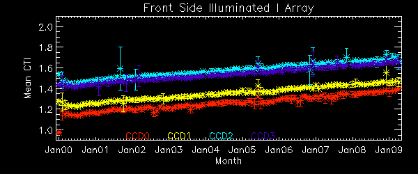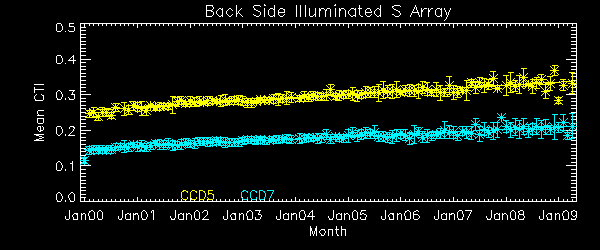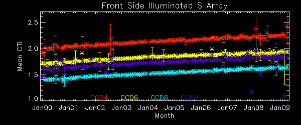 CTI's are computed for Mn K alpha, and defined as slope/intercept x10^4 of row # vs ADU.