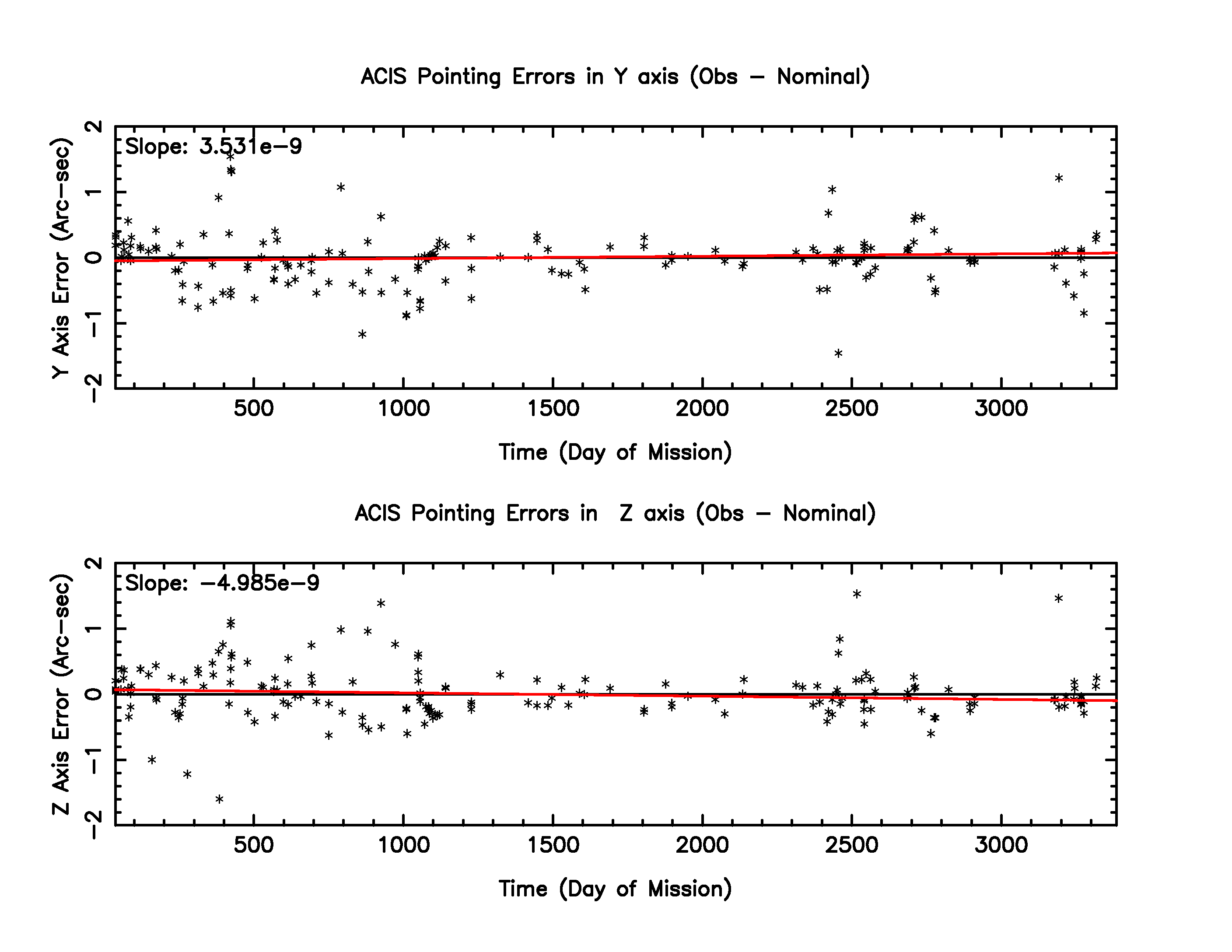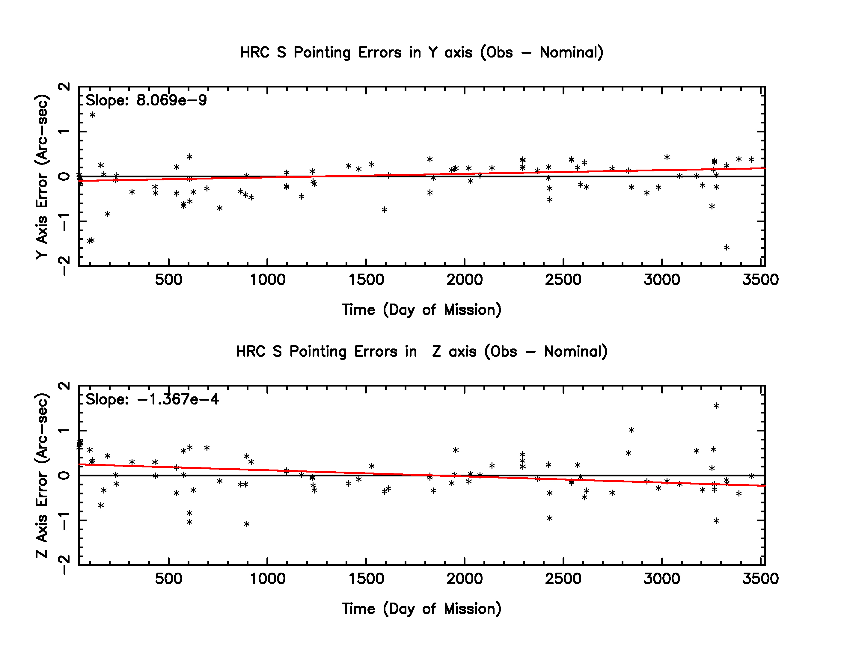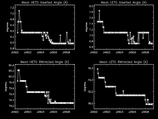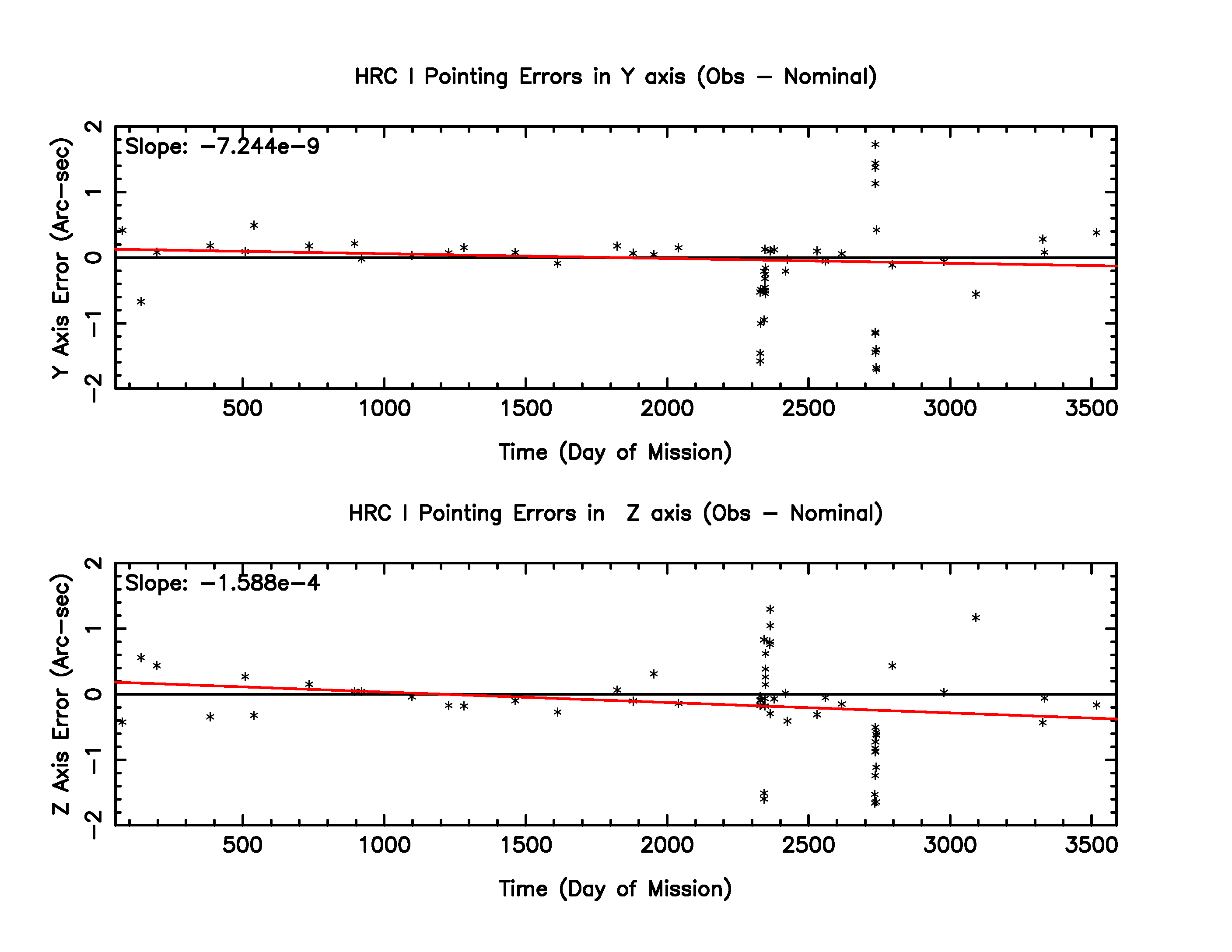 The large dispersion around DOM ~ 2400 (Jan 2005) are all due to none grating Capella observations. Many observations are off-axis observations (e.g., obsid 6558).